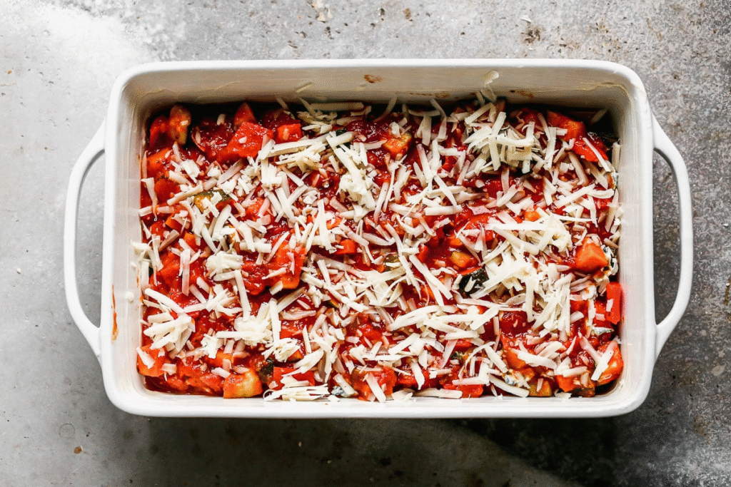 Make sure your vegetables are cooked and drained properly to remove excess moisture, and don’t overload the sauce. Let the lasagna rest for about 10–15 minutes before slicing.