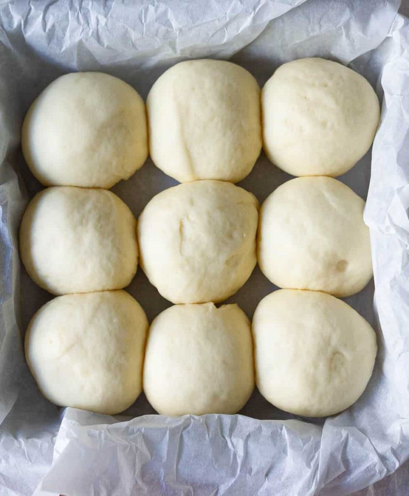 Place them on a baking tray. If you like soft, pull-apart rolls, place them close together. If you like crisp edges, leave a little space.
